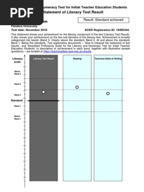 Statement Of Literacy Test Result Literacy And Numeracy Test For Initial Teacher Education Students Pdf Literacy Behavior Modification